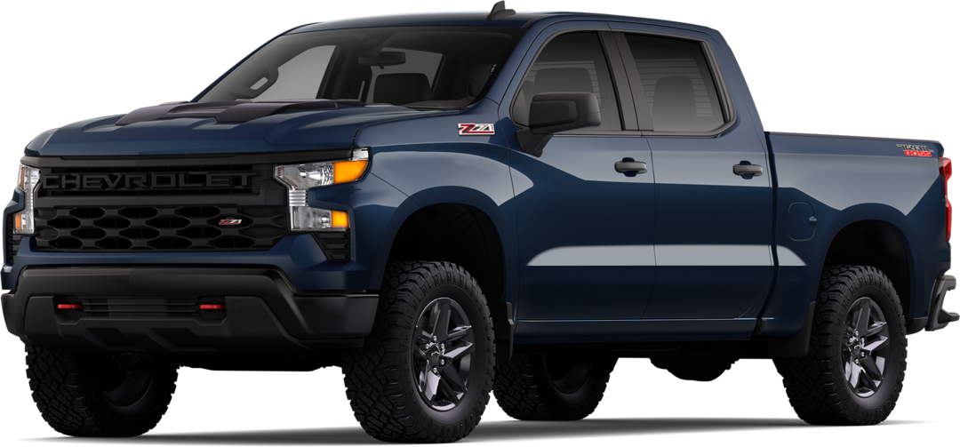 The Custom Trail Boss enhances off-road capability with standard four-wheel drive and the 2.7-liter engine, with the 5.3-liter V8 or diesel available. It adds a 2-inch factory lift, underbody skid plates, an automatic locking rear differential, recovery hooks, and the Z71 off-road suspension package.