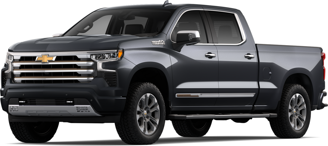 The High Country delivers refined luxury with unique exterior styling, 20-inch wheels, side assist steps, rear heated seats, dual exhaust, and advanced safety technology including adaptive cruise control and enhanced emergency braking.
