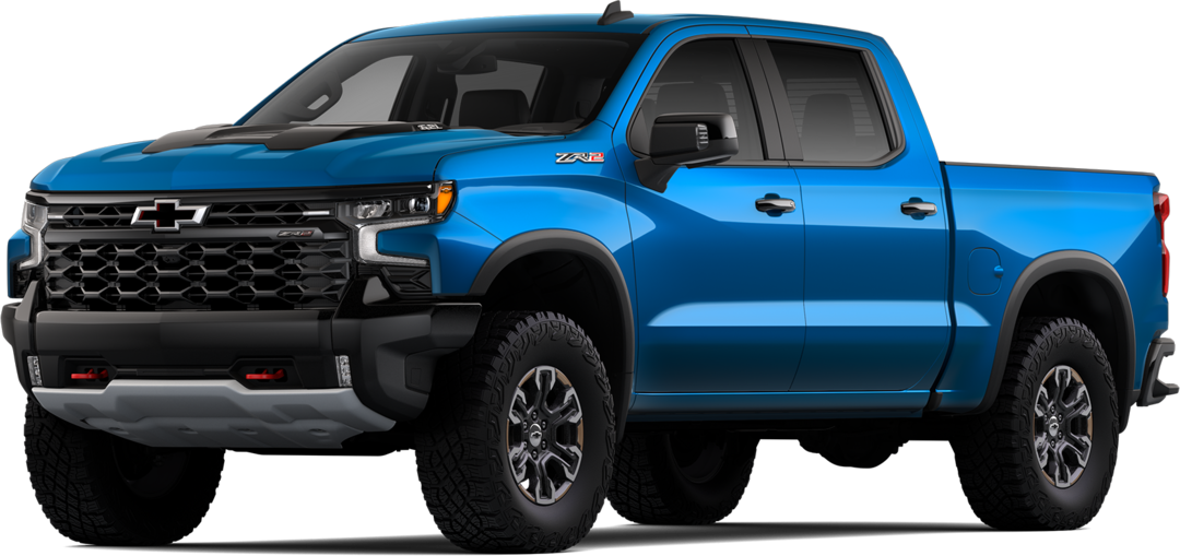 The top-tier off-road ZR2 includes the 6.2-liter V8 or diesel, 33-inch mud-terrain tires, electronic locking front and rear differentials, advanced suspension tuning, and off-road armor. It features a digital rearview mirror, heated rear seats, a head-up display, and a bed-view camera.